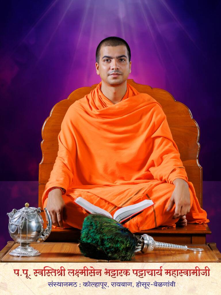 The current Mahaswami attained his initial training at the Matha itself under his Guru’s guidance. Due to his intelligence, devotion, scholarship and humility, he ascended the post of the Pontiff of the Matha at Kolhapur. He accepted Deeksha on 2nd August 1965 at a vibrant ceremony which was attended by Acharya Shri Anantkirti Maharaj and Acharya Shri Vimalsagarji Maharaj.